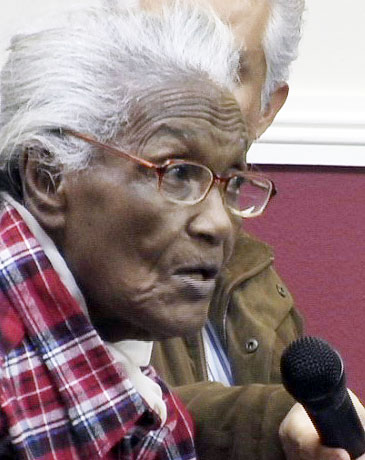 Pictured top: Leola Robinson addresses the Century Town Council Monday night. Pictured below: Century residents listen to Robinson. NorthEscambia.com photos, click to enlarge.
