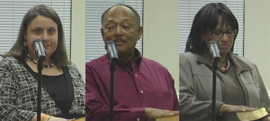 Political newcomer and 10-year Century resident Jacke Johnston was sworn in to Seat 3 after defeating incumbent Henry Hawkins. Gary Riley, who ran for re-election with no opposition, was sworn in to Seat 4, and funeral home owner Sandra McMurray Jackson took the oath of office for Seat 5, which was previously held by Sharon Scott who did not seek re-election.