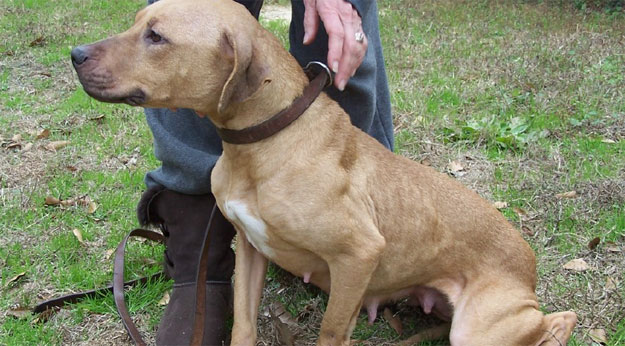 The owner surrendered and released the dog, and she is being housed at a kennel. She had three nursing pups. One died, and the other two have been adopted.