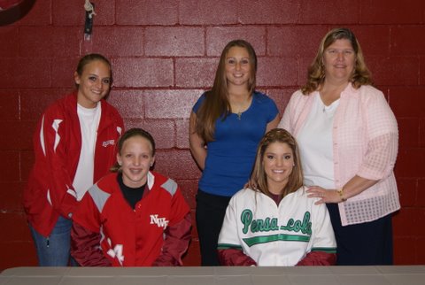 Pictured top: (L-R) NWF Coach Taryn Gray, Michelle Myers, PSC Coach Horn, Maleah McCombs, and PSC Coach Brenda Pena. Pictured below: (L-R) Mitchell Myers, Shelby Myers, Matt Holland, NWF Coach Taryn Gray, and signing Shelby Myers. Pictured bottom: PSC Coach Brenda Pena, Roger McCombs, Debbie McCaskill and Maleah McCombs. Submitted photos for NorthEscambia.com, click to enlarge.