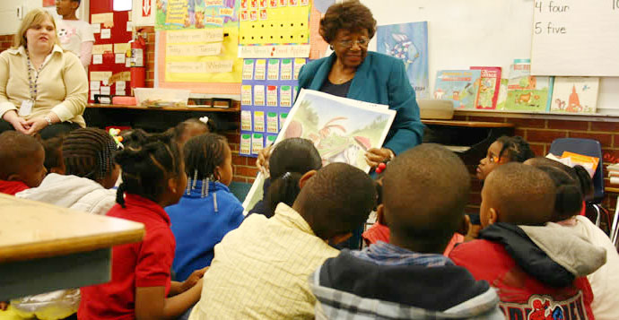 Pictured top: Escambia County Commissioner Marie Young reads to students at Spencer Bibbs Elementary School. Courtesy photo for NorthEscambia.com, click to enlarge.