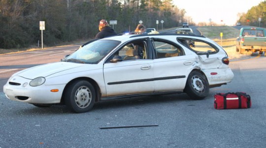 Pictured above and below: At least one person was injured in this two vehicle crash Thursday afternoon at Highway 97 and Highway 29 in Molino. NorthEscambia.com photos by Kristi Smith, click to enlarge.