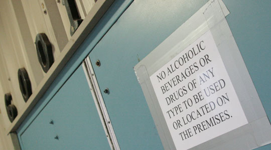 Pictured: A sign on the entrance of the Century Ag Building clearly states that no alcohol or drugs are allowed on the premises. NorthEscambia.com photo, click to enlarge.