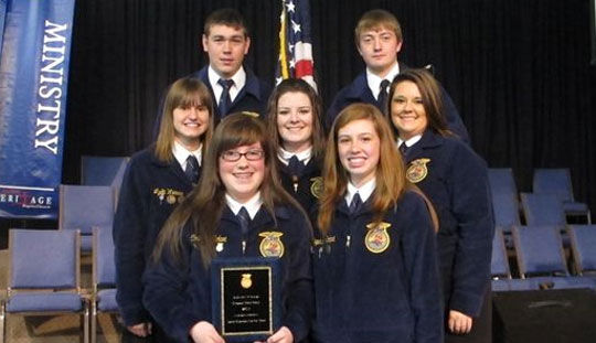 Pictured top: Courtney Solari was awarded first place in Creed Speaking at the recent District I FFA Competition. Pictured below: (front, L-R) Courtney Solari, Stephanie Solari, (middle) Lydia Weaver, Allyson Bullard, Allie Vidak, (back) Brandon Chambless and Dillian Crutchfield. Submitted photos for NorthEscambia.com, click to enlarge.