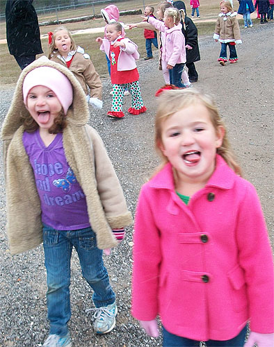 Pictured: VPK students at Bratt Elementary enjoy a little outside learning during an early December snow flurry. Submitted photo, click to enlarge.