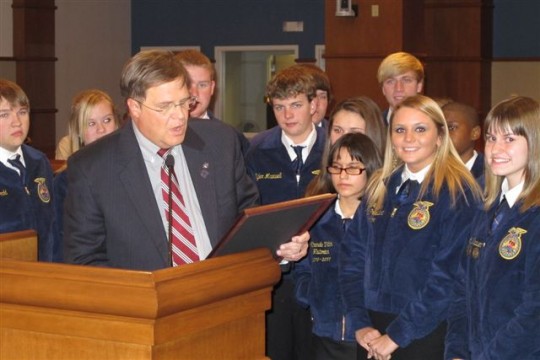 The proclamation was made Thursday night as dozens of FFA members, including students from Northview High, Tate High and Ernest Ward Middle schools, looked on.