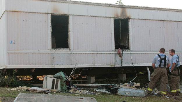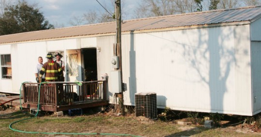 The fire was reported about 3:20 p.m. in the 200 block of Fowler Lane off Old Atmore Road, just north of the Alabama/Florida line. The fire was mostly contained to a bedroom at one end of the single wide mobile home.