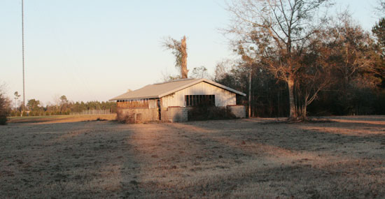 Pictured below and inset: This area around the old Ernest Ward High School “hog barn” and part of the field below are on the current Ernest Ward Middle School property and have been leased to Northwest Escambia Little League for four ball practice fields. NorthEscambia.com photos, click to enlarge.