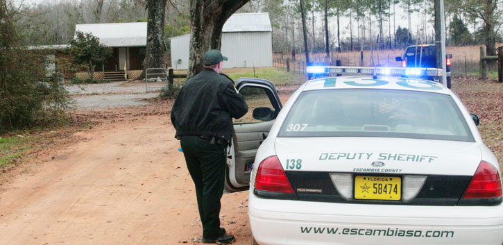 Pictured above: Deputies investigate an accidental shooting involving a 12-year old in Molino Saturday morning. NorthEscambia.com photo, click to enlarge.