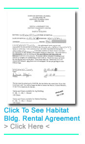 According to the rental agreement executed February 18 with the Town of Century, the building on East Pond Street was rented to Martha Tims. The rental agreement specifies that the building remain in good, clean condition, and that there was to be no smoking, no alcoholic beverages or drugs on the premises.