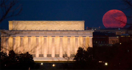 Pictured top: The moon rises behind the Lincoln Memorial in Washington Saturday night (courtesy NASA). Picture inset: The moon rises in Walnut Hill, NorthEscambia.com photo, click to enlarge.