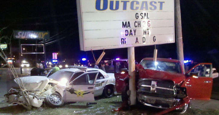 The driver and passenger of the red truck, or the “at fault vehicle” as some of you so blindly said, happened to be my parents. It was a complete accident. However, for those of you who are beyond ignorant, the police officer WAS at fault. He was driving entirely too fast without his lights, and wasn’t paying attention to what was going on on all sides of his vehicle. Please think before you comment on something. Use your brain. Don’t be ignorant. My parents weren’t hurt (thankfully) but I’m sure most of you don’t care about that part.. Naturally, the ignorant human being just wants something to talk about. Both parties ended up having minor injuries, like the article said. Word from the wise… Watch what you say. Karma always comes back around. Would you like it if nasty things were said about your family that was involved in an accident? God bless you all.