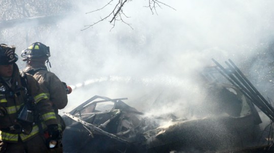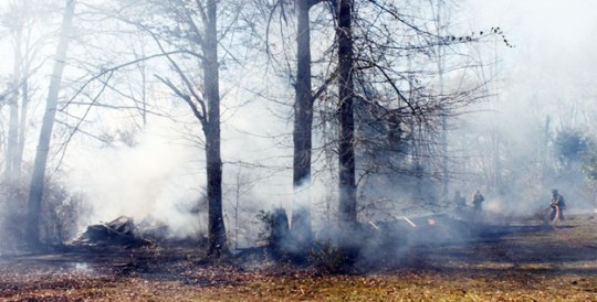 Pictured above and below: Firefighters battle a fire Tuesday afternoon on Pine Top Lane in Cantonment. NorthEscambia.com photos by Kristi Smith, click to enlarge.