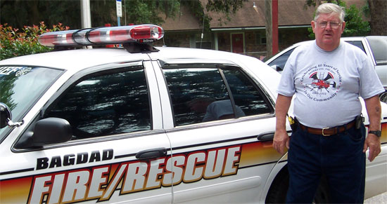 He followed in his father’s footsteps by joining Bagdad Volunteer Fire Department in 1973 and actively served the citizens of Bagdad and Santa Rosa County for 38 years. He worked his way up through the ranks as captain and assistant chief and in 1995 took the role as Fire Chief. Bagdad Fire Department grew tremendously under his direction.