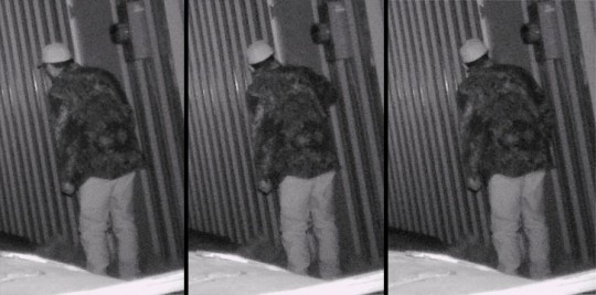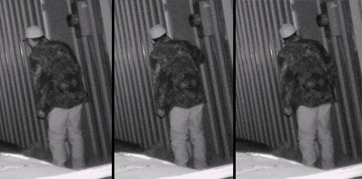 Pictured: These surveillance photos show a man wanted in connected with a burglary at barn near the Alabama/Florida line late Thursday night. Submitted photos for NorthEscambia.com, click to enlarge.