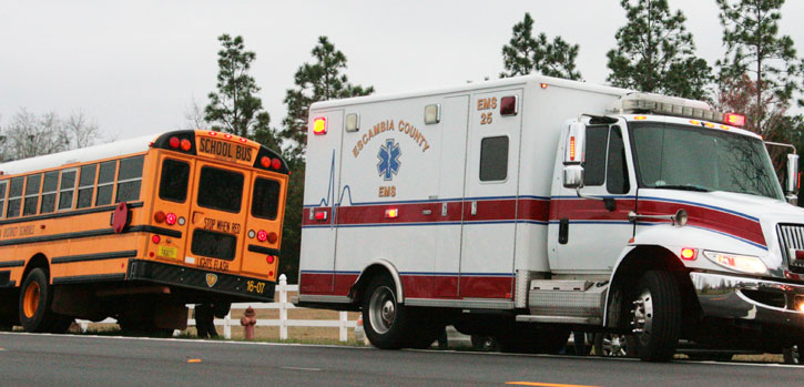 Pictured top: A Camelot Academy student was transported to a Pensacola hospital after being injured in altercation on an Escambia County school bus Tuesday afternoon in Molino. NorthEscambia.com photo, click to enlarge.