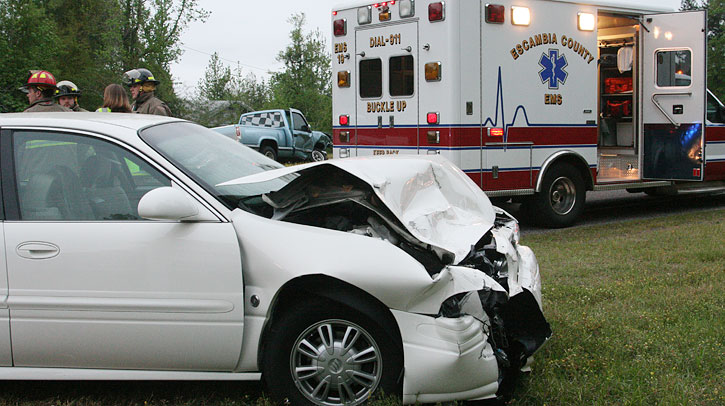 A pickup and car collided at the intersection of Highway 29 and Bogia Road about 6:30 p.m. Two people in the car received minor injuries, while the driver of the pickup was not injured. The driver and passenger of the car were transported to a Pensacola hospital for evaluation.