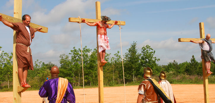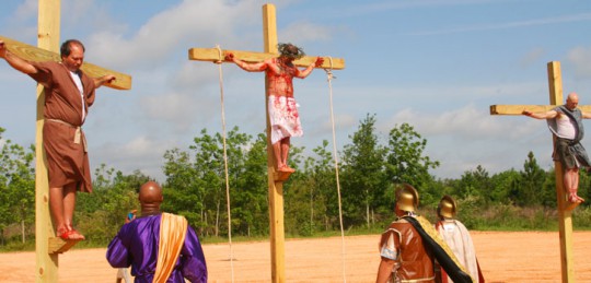 Christians are marked Good Friday — the solemn day when Christians reflect on the suffering and crucifixion of Jesus Christ. McCullough Christian Center marked the day with a reenactment of the Crucifixion.  The six hour event  featured three crosses depicting Jesus and the two thieves.