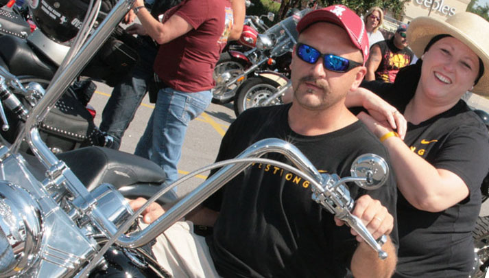 Dozens of motorcyclists took part in a 75-mile Labor Day ride, while children swarmed the parking lot to spend money to play games and help the cause for a woman that claimed to have recently gone into remission from her cancer.