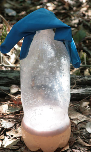Pictured top: Deputy David Bashore works to remove a bottle that was allegedly part of a meth lab thrown into a stream that feeds a gravel lake in Century. Pictured inset: The alleged active meth lab. Pictured below: Some of the items believed to have been used in connection with meth lab. NorthEscambia.com photos, click to enlarge.