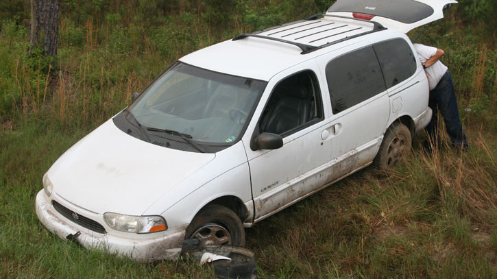 The Walnut Hill Station of Escambia Fire Rescue responded to a single vehicle crash on Highway 97 just south of Howell Road just before 7 a.m. Thursday. They found that the driver of this Nissan Quest had lost control in a curve and ran off the road into a ditch. There were no injuries. NorthEscambia.com photo, click to enlarge.