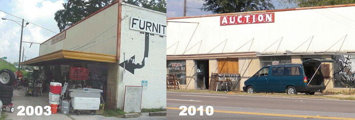 Pictured top: Partial demolition of this building on North Century Boulevard near the Alabama State Line revealed signage for the former Ash Dept. Store and Worley’s Food Store. Pictured below: The building in 2003 and 2010. Pictured bottom: More images of the building just before demolition. NorthEscambia.com photos, click to enlarge.