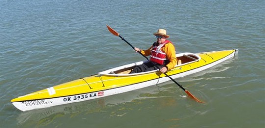 She will carry extra gear, provide re-provisioning of food and supplies, and be available to help with any emergency situations. Jim will carry a SPOT satellite beacon to provide on going track of his position. The boat being used is a decked solo canoe called a Superior Expedition, built by Scott Smith, of Lyons, Michigan. At first look, it has some similarity with a kayak, but has more internal volume, a larger cockpit, and is noted for its seaworthiness. The boat’s name is Ibi (pron. EYE-be), the Timuquan Indian word for water.