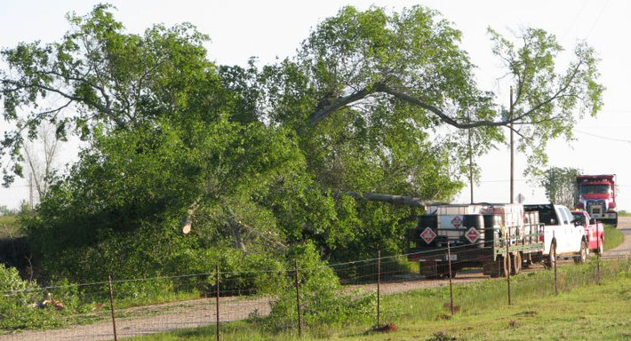 Picture above and below: Crews work Tuesday morning to remove a large oak tree on Upper Creek Road north of Flomaton. Submitted photos by Amy Lambeth for NorthEscambia.com, click to enlarge.