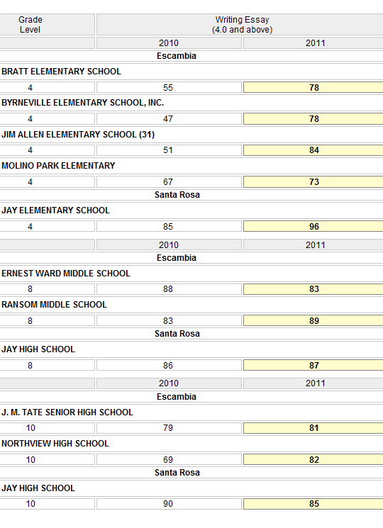 FCAT writing scores are out for fourth, eighth and tenth graders, and they are good news for North Escambia area schools.