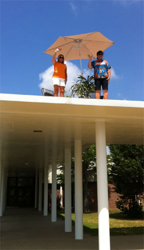 Principal Rachel Watts and principal intern Lisa Arnold remained on the roof for one hour for every $100 contributed to Relay. The school raised $600 — enough to keep the principal duo on the roof for six hours.