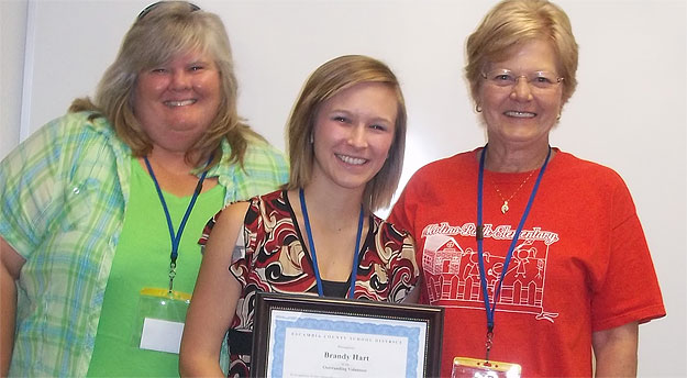 Molino Park Elementary School has named its 2010-2011 volunteers of the year. They are (pictured L-R) Adult Volunteer Tina Pendleton, Youth Volunteer Brandy Hart and Senior Volunteer Janet Crosby. The were honored with a dinner at New World Landing on May 4 and were also honored at the school Wednesday. Submitted photo for NorthEscambia.com, click to enlarge.