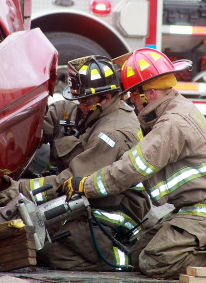 Pictured top: Three people, including a child, were in this single vehicle crash Sunday morning in Cantonment. Pictured inset: Firefighters use the Jaws of Life to free two people from the vehicle. Pictured inset: Highway 29 was shut down in Cantonment due to the crash. NorthEscambia.com photo by Kristi Smith, click to enlarge.