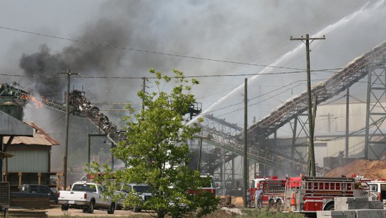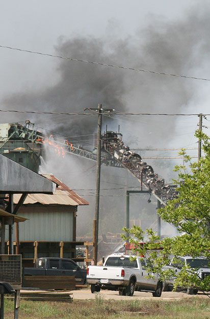 Black smoke from the lumber mill fire could be seen from as far away as Walnut Hill just before 3 p.m. Dozens of firefighters from Atmore, Poarch, Nokomis, Flomaton and Walnut Hill battled for hours to completely contain the fire. The major portion of the fire was extinguished within about an hour, but wood chips continued to smolder and burn for hours.