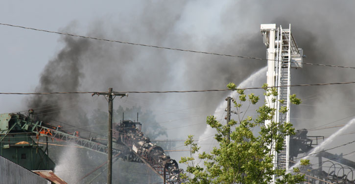 Pictured: A Sunday afternoon fire at Swift Lumber in Atmore. NorthEscambia.com photo, click to enlarge.
