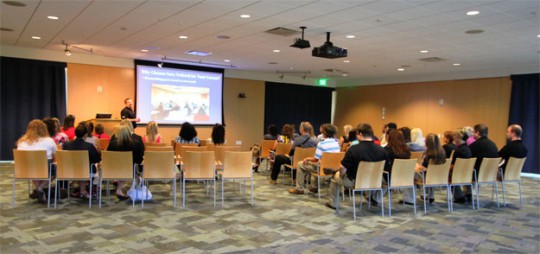 The combined group was give an overview of operations at the Pensacola facility and learned about potential employment opportunities with Navy Federal.