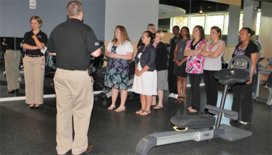 Pictured above: Students watch a presentation in the Navy Federal events room. Pictured below: Students tour the employee fitness center. Courtesy photos for NorthEscambia.com, click to enlarge.