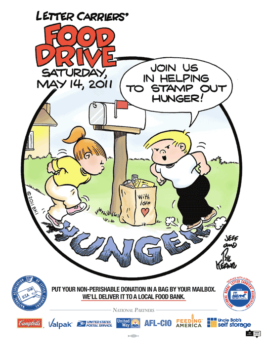 Saturday is the Stamp Out Hunger Food Drive. You can help by placing a bag of non-perishable food items in or around your mailbox. Your letter carrier will collect the food items and deliver them to local food bank banks and pantries.