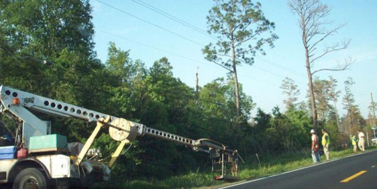 The outage was caused when a semi-truck pulling mobile home hit a utility pole nearr Muscogee Road and Robinson Street about 12:15 p.m. The downed power lines then sparked a brush fire that consumed about two acres. Firefighters also responded to fires on Andalusia Road in the Cantonment area.