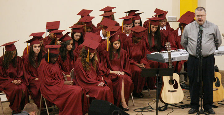 Pictured above: Bro. Gary Wieborg leads prayer during the Northview Baccalaureate service Sunday afternoon. NorthEscambia.com photo, click to enlarge.