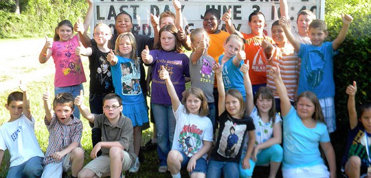 Pictured top: Byrneville third graders celebrate their FCAT success Friday morning at the school. Submitted photo for NorthEscambia.com, click to enlarge.