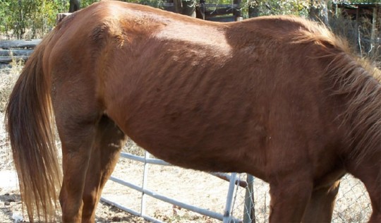 “The horse was standing on a thick layer of manure that coated the entire floor of the stall,” according to the Sheriff’s Office report. There was no food or water for the horse.