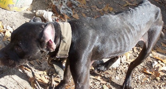 One of the dogs, a pit bull, was found chained to a piece of post, according to the Sheriff’s Office incident report. Another, also a pit bull, was found in a cage by itself with open sores on its body. A female pit bull was found with three puppies. The puppies were playful and appeared to be of reasonable health, according to the reporting deputy, but the mother’s ribs and hips were clearly visible.