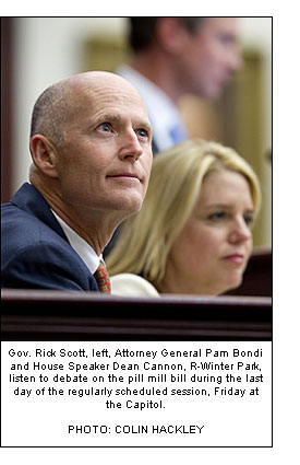 Gov. Rick Scott and Attorney General Pam Bondi made a rare appearance in the House chamber as lawmakers gave final approval to the bill (HB 7095) in the closing hours of the legislative session.