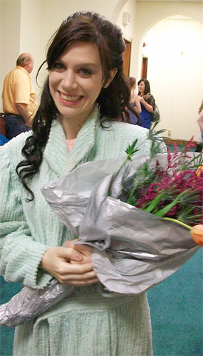 Pictured: Kate Sherill of Walnut Hill following her performance in Eurydice in which she was dipped in the “river of forgetfulness”. Submitted photo for NorthEscambia.com, click to enlarge.