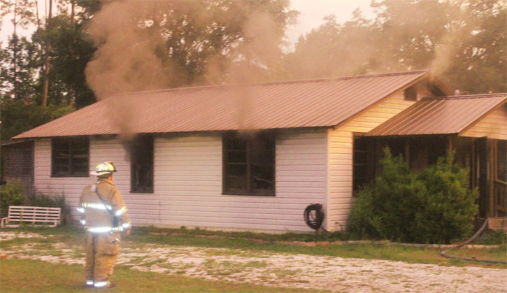 Pictured: Fire damaged this wood frame home on Crowndale Road Thursday night. NorthEscambia.com photo by Kristi Smith, click to enlarge.