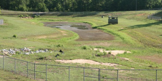 Pictured above is the large retention pond along West Highway 4 at Northview High School — an indicator of just how severe our drought conditions are. Almost dry Tuesday morning, the pond was at the lowest level since the school opened about 15 years ago, except for one time the pond was purposely drained for repairs.