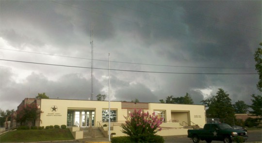 Ominous clouds seen looking south on Main Street in Atmore. Reader submitted photo for NorthEscambia.com.