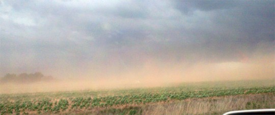 Above: Clouds and a dust storm along Florida Highway near in Alabama just north of Bratt. Photo by Tina Segers for NorthEscambia.com.