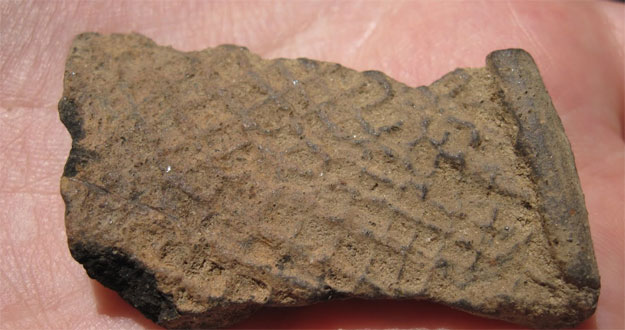 A prehistoric piece of pottery associated with the Santa Rosa-Swift Creek culture from about 2,000 years ago.