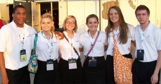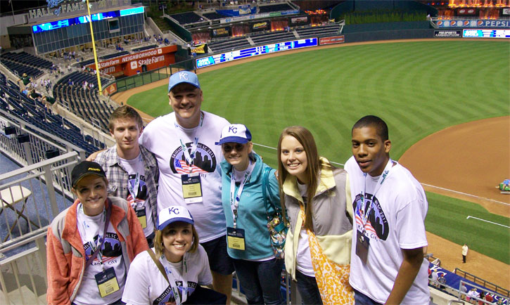 Pictured top: Flomaton High School’s SkillsUSA students at the closing ceremony of a conference in Kansas City. From the left, AJ Odom, Tiffany Chavers, Nicole Simpson, Victoria Creamer, Katie Arrant, and Dylan Green. Pictured below: The group attended a Kansas City Royals game (front, L-R) Victoria Creamer and Nicole Simpson, (back, L-R) Dylan Green, Advisor Jerry Aaron, Tiffany Chavers, Katie Arrant and AJ Odom. Submitted photos for NorthEscambia.com, click to enlarge.